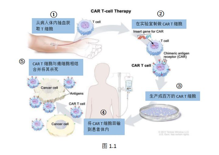 Kymriah 是一种CAR-T(嵌合抗原受体T细胞)的免疫细胞疗法,由宾夕法尼亚大学和诺华公司共同研发。其基本原理是通过获取病人自身的T细胞,然后对其进行改造和加工使其具有识别和杀死癌细胞的能力,然后再将加工好的T细胞静脉回输到病人体内来治疗癌症。