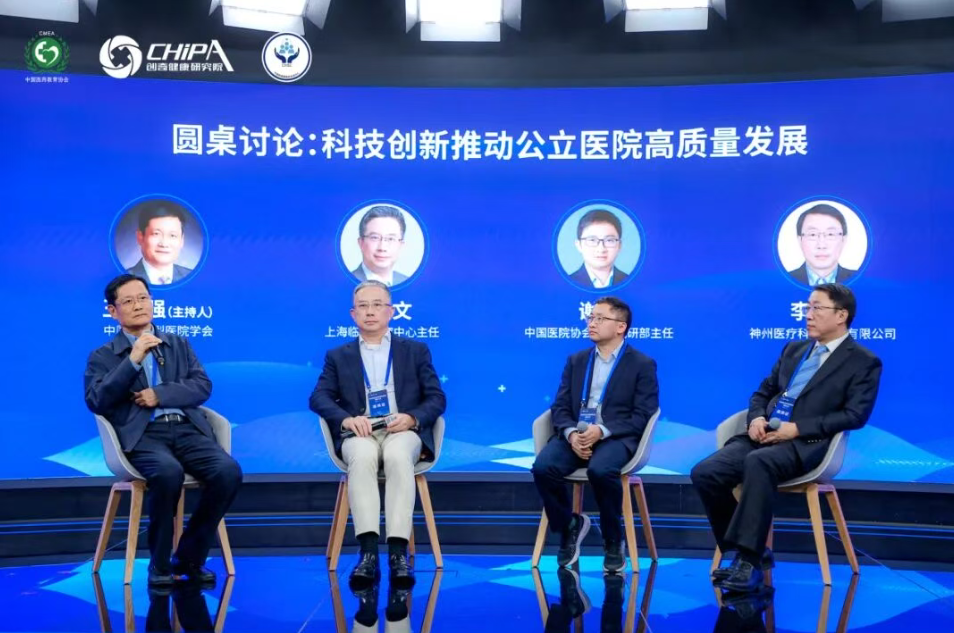 随后,由中国研究型医院学会原会长王发强主持了“科技创新推动公立医院高质量发展”圆桌讨论。上海临床研究中心、中国医院协会、神州医疗科技等机构嘉宾,共同从公立医院的功能定位、科研创新体系建设、信息化基础能力、成果转化机制等方面,探讨科技创新在推动公立医院转型升级中的核心作用。与会嘉宾一致认为,科技创新是公立医院高质量发展的核心驱动力,引领未来竞争焦点将从“扩张式建设”转向“内涵式发展”;同时,要建立协同创新机制,明确医院、科研机构与企业在创新链条中的分工,形成“政产学研医”联动格局;最后,要完善政策支持与评价体系,强化激励机制,推动科技创新成果在临床场景中真正落地应用。