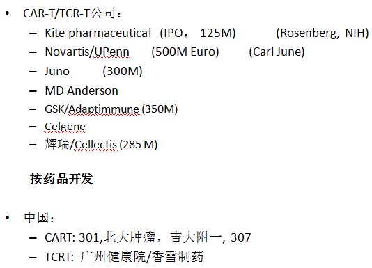2.通过过继性T细胞治疗,补充外源性的肿瘤特异性T细胞:CART/TCRT, TIL, Smart T/MASCT。