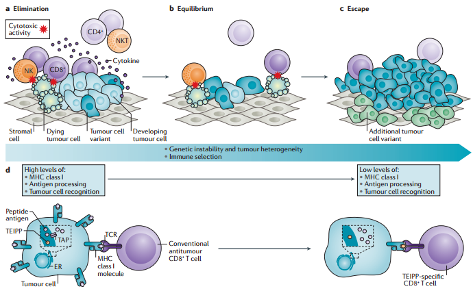 这一综述包括五部分内容,首选介绍了肿瘤逃逸和免疫编辑(Immuno-Editing),具体包括肿瘤相关抗原、肿瘤细胞MHC I类分子的下调以及AMP(antigen processing machinery)缺陷癌症的T细胞免疫;此外还总结了免疫抑制微环境、疫苗设计改善以及与其它疗法的联合治疗。以下是其中涉及的部分图片: