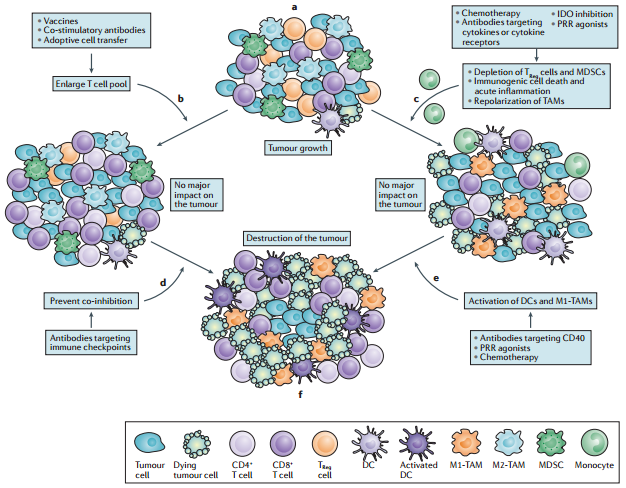 第三,成功的免疫治疗是靶向肿瘤细胞的免疫抑制策略,这可以通过特定的联合治疗实现,比如联合化疗、检查点抑制剂等。