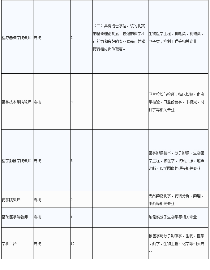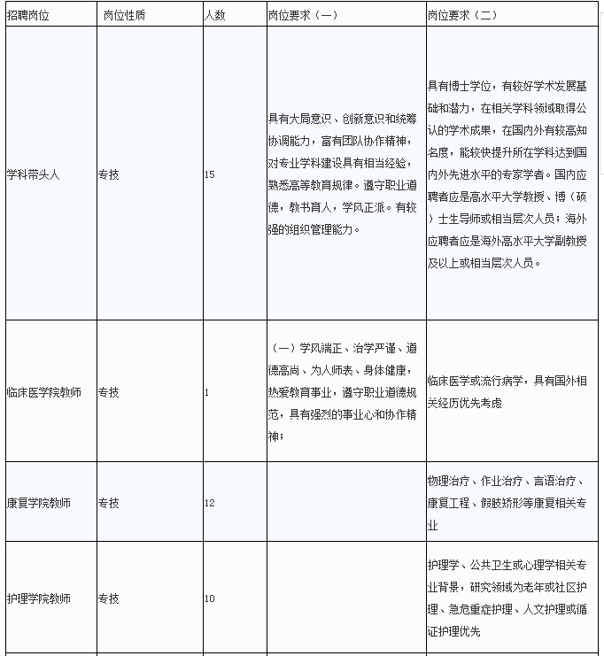 1. 临床医师:临床相关专业博士学历(紧缺专业可放宽至硕士学历),具有医师资格证书,独立工作能力强,有良好的沟通能力、团队协作精神和较强的科研能力,硕博导优先考虑。