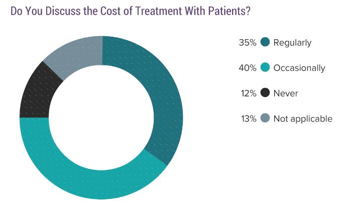 今年的调查中,有75%的受访医生表示他们会经常或偶尔与病人探讨治疗费用,2016年这个比例为85%,有了一定下滑。