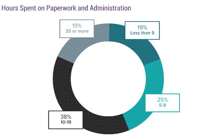 根据Medscape lifestyle 2017年度报告显示,使医生们不堪工作重负的主要因素仍旧是繁重的文书行政工作,而且这方面的工作时间仍呈上升趋势。在2014年度报告中,35%的受雇医生和26%的自主经营医生每周至少会耗费10小时在文书工作上,而今年有超过半数(57%)的医生需要花同样的时长。