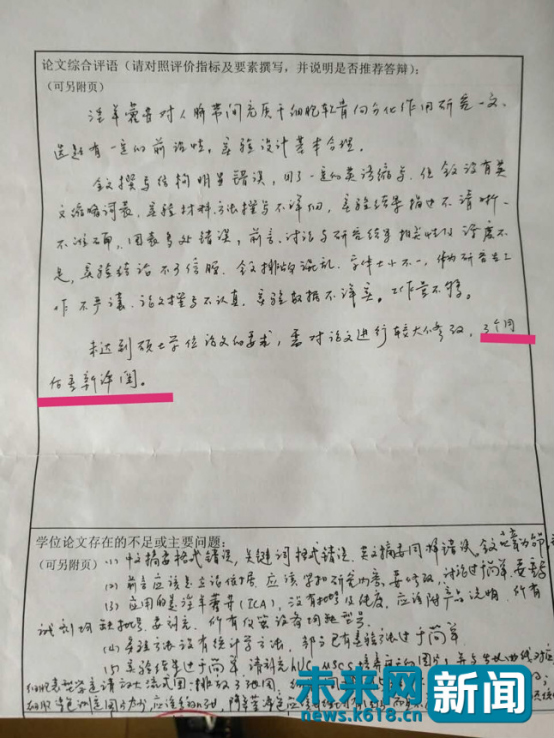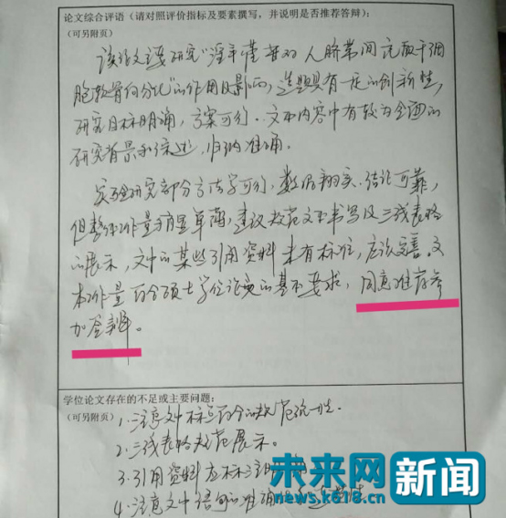 一份评阅意见显示:同意推荐参加答辩。(图片由死者家属提供)