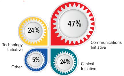 53%的受访者说,改善医师到医师和护士到医师的沟通是其医院的目标,而改善护士到护士的沟通为43%;相应的,有19%的受访者表示改善医-医沟通的目标也包括在医院的移动化策略中,护-医为18%,护-护为13%。