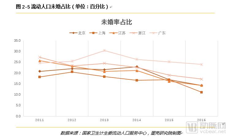 3. 未婚人群占比较低,趋向家庭化整体流动