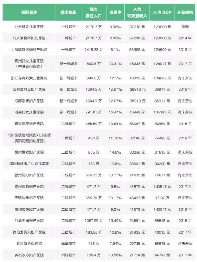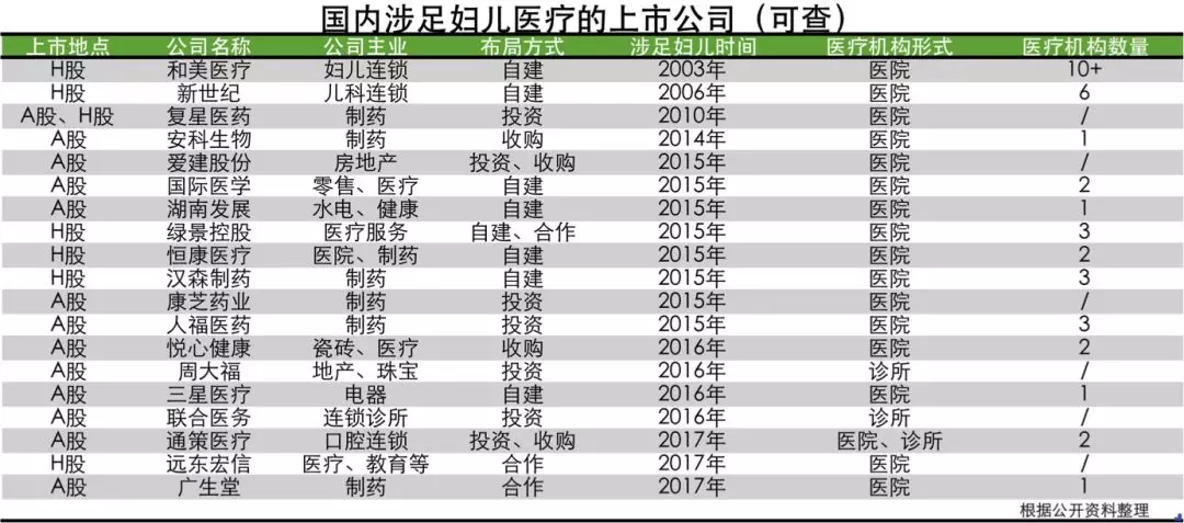 由于妇儿医院的高投资、长回报期,单纯的财务投资机构一般存续期不够长,自然在这方面的涉猎不会特别多,也相应会对投资标的更挑剔。而上市公司布局妇产儿医院,有可能出于战略的转型(地产公司或传统行业转型),也有可能出于战略的规划和布局(医药公司等)。