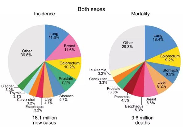 另外,1810万新增癌症病例中有950万为男性,亚洲男性占发病总数的近一半;死亡率达60%。女性共有860万新增癌症患者,发病率亚洲女性占47.5%,死亡率略过一半。