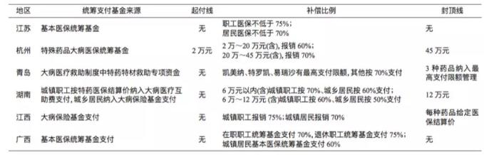 部分典型地区的特药补偿方案,图表来源:《卫生经济研究》