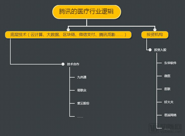 综合以上信息,基本上可以梳理出一条腾讯的医疗行业逻辑框架: