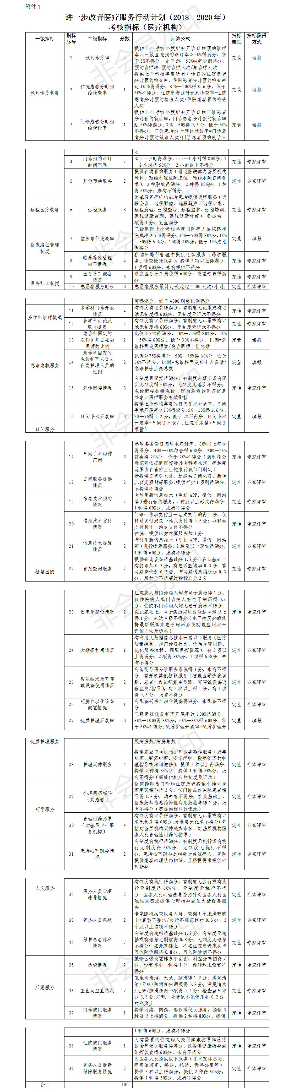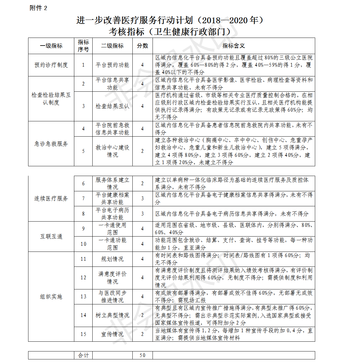 关于印发进一步改善医疗服务行动计划(2018—2020年)考核指标的通知