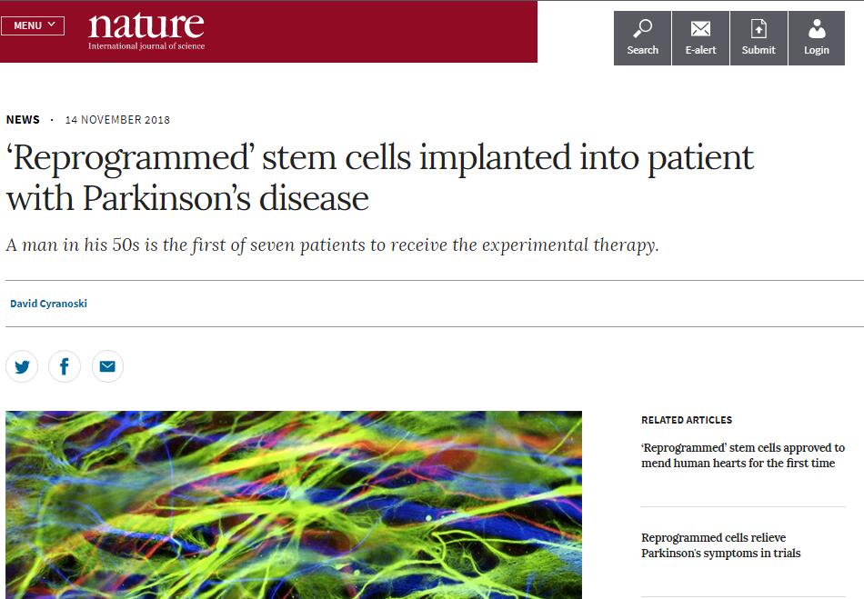 《‘Reprogrammed’ stem cells implanted into patient with Parkinson’s disease》