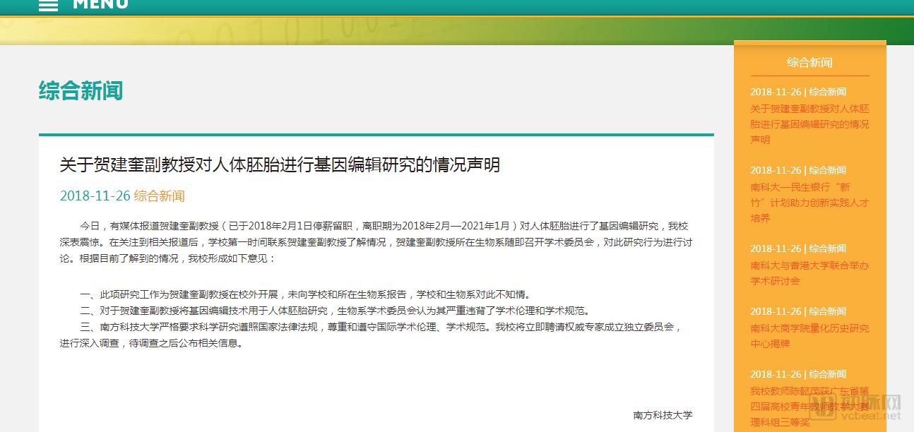 不仅是相关医院,贺建奎本人在职的南方科技大学也表示对此并不知情。