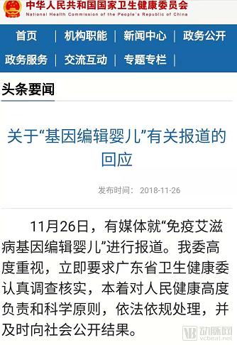15点19分,深圳市卫健委医学伦理专家委员会通过新京报表示:“首例免疫艾滋病基因编辑婴儿”试验进行前并未向该部门报备,正在开会研究此事。