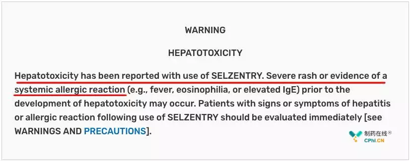 3. 已上市药物Selzentry (Maraviroc) 仅仅被用于耐药且CCR5阳的艾滋病患者中, 同时药物具有严重的肝毒性、皮肤及过敏反应,这与靶点本身特点有密切关系。药物有一个黑框警告。