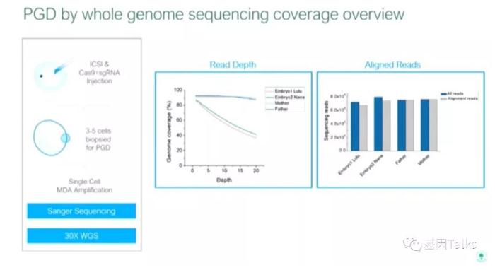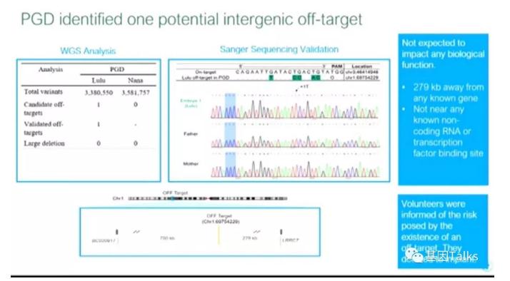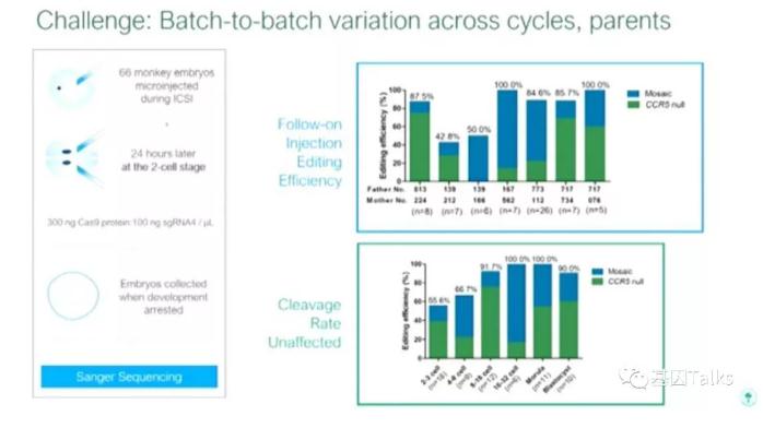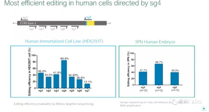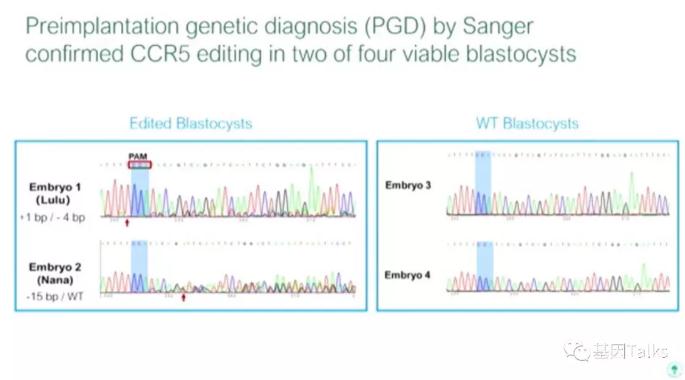 接下来最关心的,就是人类试验。我们对父母双方都做了基因组测序,以用于检测脱靶效应。这些父母都是父亲为HIV病毒携带者,母亲为HIV病毒阴性。我们对父亲的精子进行了清洗,然后进行基因编辑。在怀孕过程中,我们一直紧密随访,直到孩子健康平常地出生。