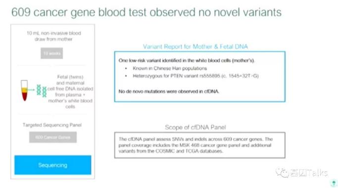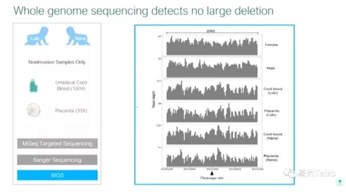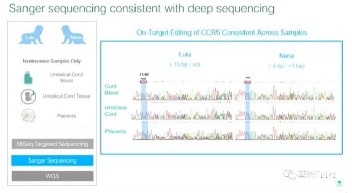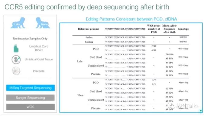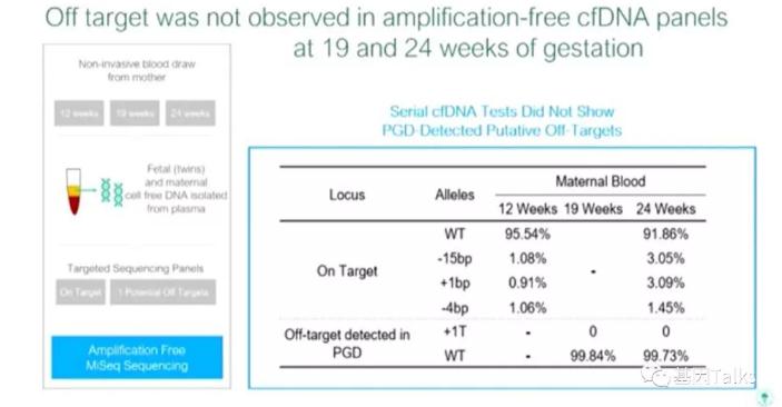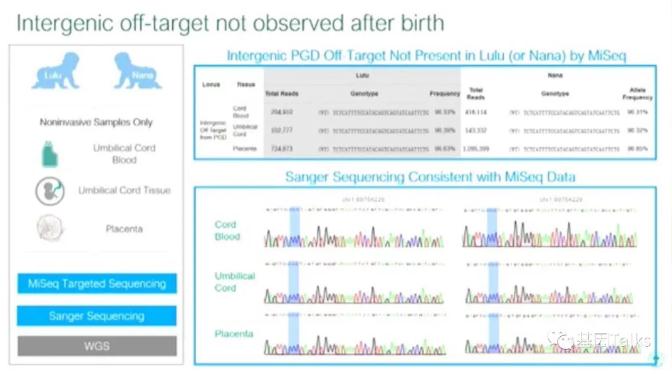 怀孕的第19周和第24周,我们分析了母亲血液中的无细胞DNA(cfDNA),其中没有见到有新产生的致癌性突变;后续的脐带血分析也确认了基因组编辑的结果。