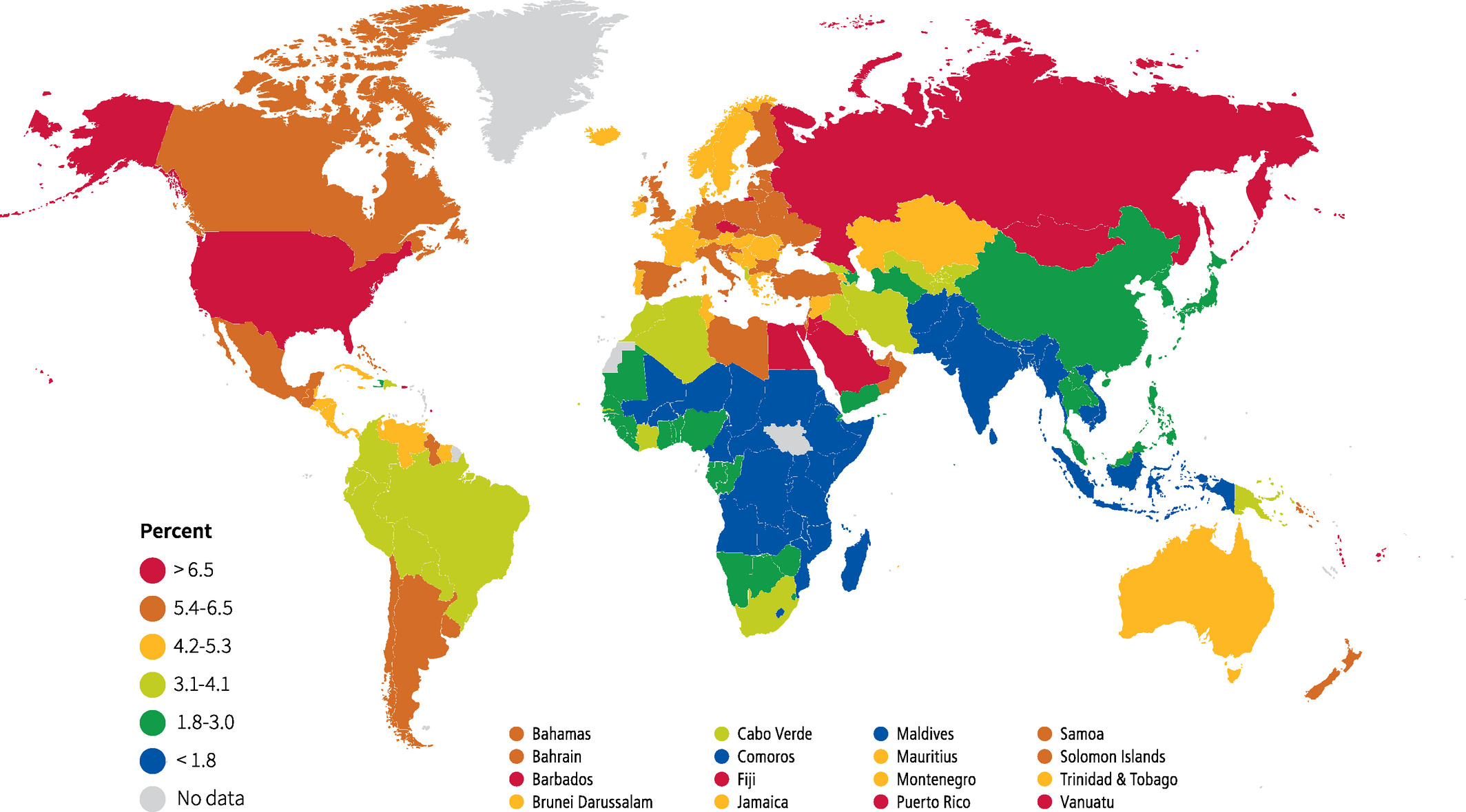 几乎所有国家同时出现的超重率都在增加,分析认为可能是由于引入了“西方生活方式”:能量密集,营养不良的食物以及降低的身体活动频率。