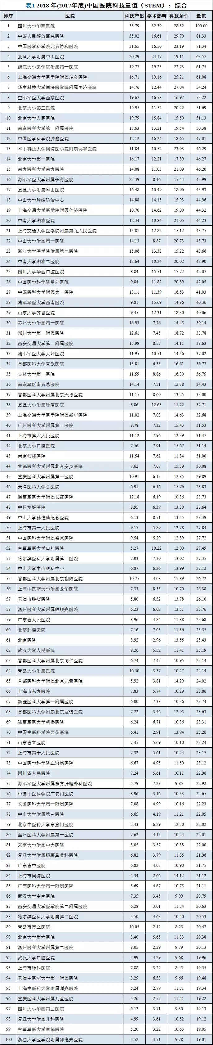昨日(12月23日),“2018中国医院科技实力100强榜单”正式发布。