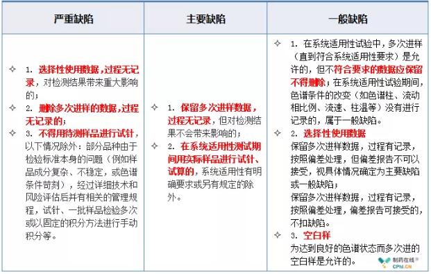 《广东省药品生产企业实验室数据审计评定要点(试行)》把药品生产企业数据可靠性发现问题根据来源分为三大类,分别是:计算机化系统、色谱系统与数据处理、记录。