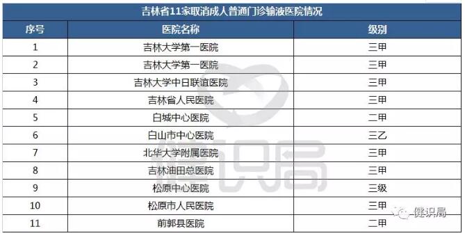 而据业界统计,包括吉林大学第一医院、吉林大学第二医院、吉林省人民医院等知名三甲医院在内,该省已有11家省市县级医院取消成人普通门诊输液。