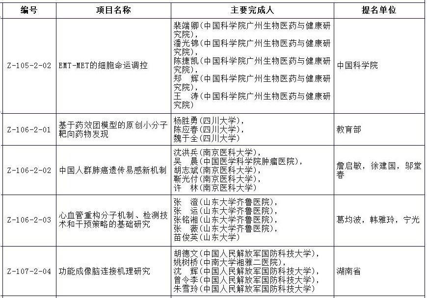 2018年度国家自然科学奖医学类获奖项目