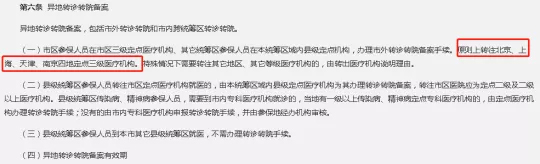 而根据徐州人社局印发的《徐州市城镇职工和城乡居民基本医疗保险异地就医经办规程(试行)》,“原则上转往北京、上海、天津、南京四地定点三级医疗机构。”