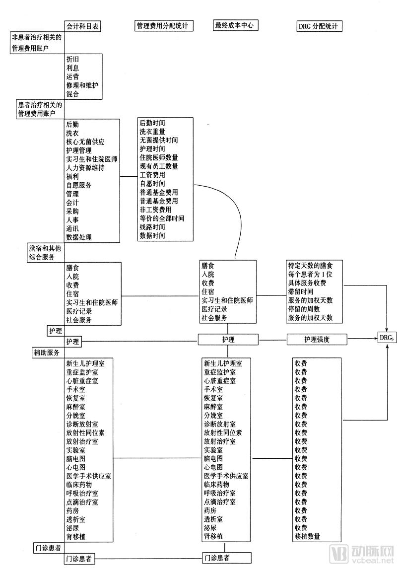 有一定成本基础的国家,DRG引入的同时促进了其医院成本核算的改革。他们取个别医院作为试点,制定一套标准的成本核算体系,国家据此推出一套医院成本核算的指导手册,其中明确规定成本类型及分摊方法,最终将医院成本全部归集到成本中心和病人身上。