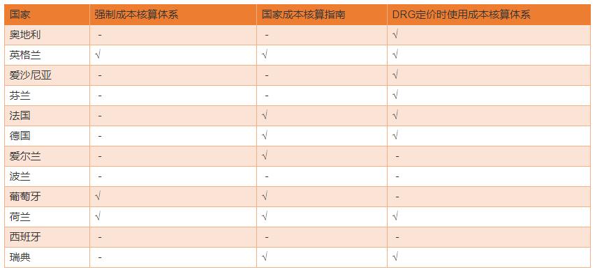 表1 欧洲8个国家DRG成本核算不同特点总结