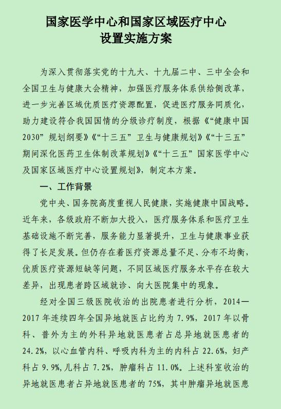 近日,国家卫健委发布《国家医学中心和国家区域医疗中心设置实施方案》(以下简称方案),对于医疗资源的配置做了具要求。