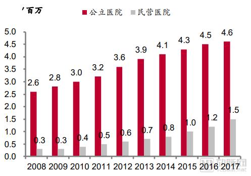 国信证券研报认为,医疗服务行业空间大,竞争格局好。从卫计委统计数据来看,专科医疗和体检服务都是市场广大的领域。眼科、口腔等专科领域增速保持在15%以上,随着居民健康意识的提升,体检人次也迅速提升。这些领域孕育了像爱尔眼科、美年健康这样的龙头公司,在各自非公立医疗领域市占率均处于第一。中国一二线城市公立医疗资源丰富,于是公司均开拓三四线城市较为空白的市场,对公立医疗体系进行错位补充,伴随消费升级、渠道下沉,维持高速增长。