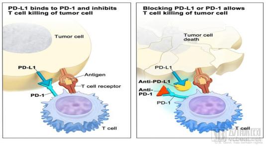 这就是检查点抑制剂发挥作用的地方。它可以阻止癌细胞“欺骗”T细胞,使T细胞正确识别和攻击癌细胞。