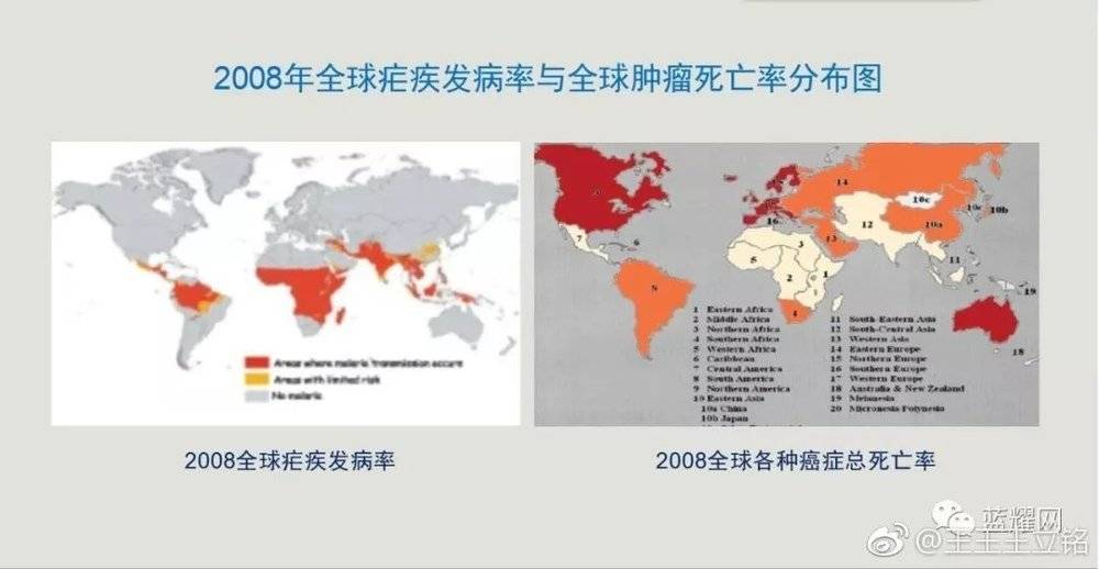 好像确实疟疾发病率高的地方,癌症死亡率低!