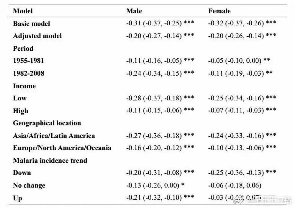 -在疟疾流行的地区,抗疟疾药物,比如奎宁和青蒿素的使用自然也更加广泛。而一直有人猜测这两种药物可能本身就有抗癌效果,也有一些相关的研究(可以参考这个新闻:https://www.fiercebiotech.com/research/new-insight-into-why-malaria-drugs-work-against-some-cancers-could-boost-drug-development)。因此,陈小平观察到的微弱的负相关性,也可能不是疟疾高发、而是抗疟疾药物使用的结果;