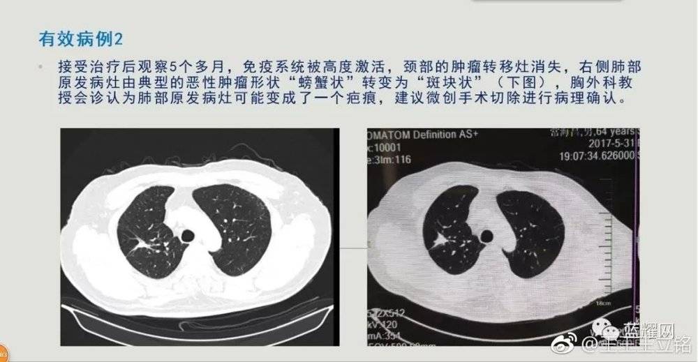 陈小平演讲中解释,这个患者用疟原虫治疗之后,肿瘤形状变化,因此用手术切除,无病生存至今。