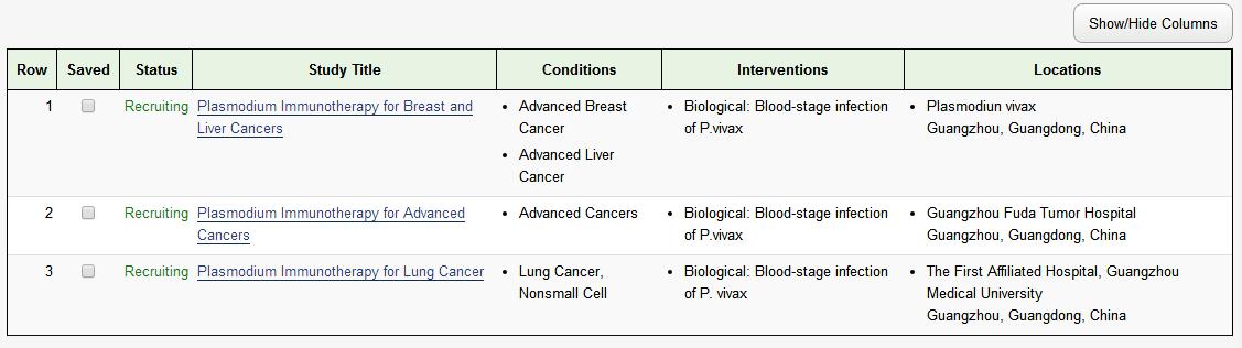 就在此前的1月31日,中科蓝华在其官网还发布了一则患者招募信息,称疟原虫免疫疗法治疗晚期肺癌的临床研究目前已经在广州医科大学附属第一医院与钟南山院士的团队合作开展,取得了初期研究进展,现扩展到其它癌症中。