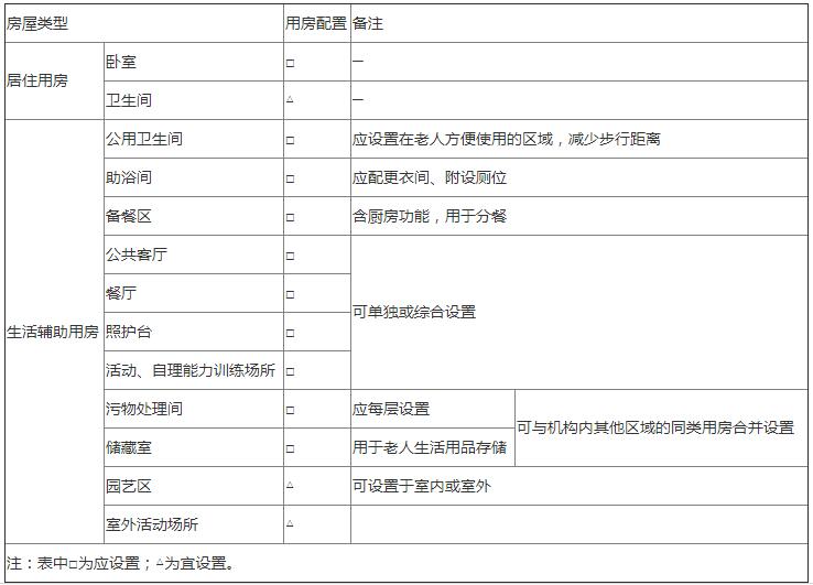 3.1单个认知症照护单元由卧室、餐厅、公共客厅、备餐区、公用卫生间、助浴室、照护站、污物处理间、储藏室以及活动、自理能力训练场所等用房组成,其中餐厅、公共客厅、活动、自理能力训练场所等可以综合设置,污物处理间、储藏室等可与机构内其他区域的同类功能用房合并设置。