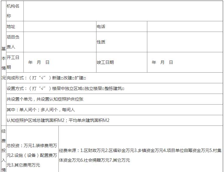 1.在既有养老服务机构内设置认知症照护床位的,按照《认知症照护床位设置指南》要求,由机构自行实施,完成后向区民政部门申请验收(验收表详见附件2)。