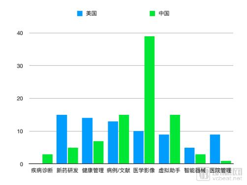 但从创业公司的层面上看,中美的投资均各有优劣。美国各项目融资金额虽大,但前期项目的缺乏意味着没有足够的新鲜血液参与竞争,这并非一个前沿技术应有的样子;中国新项目虽多,但呈现影像聚集的趋势,竞争理解,而新药研发、医院管理等技术则缺乏鲜有人参与。