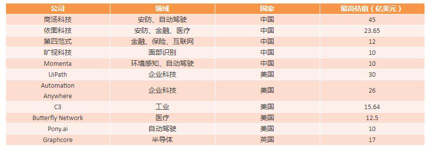 如果说创业公司代表了一个领域的活力,那么独角兽则是一个领域的希望的象征。在入榜的11家独角兽中,有5家来自于中国,另外5家来自于美国,双方打成平手。