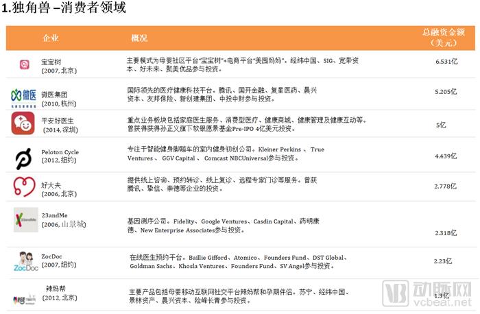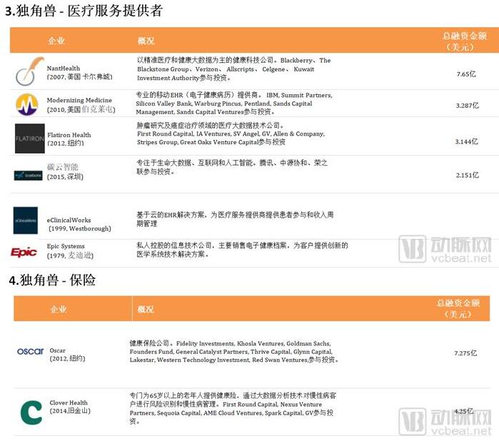 从上表可知,“独角兽”名单中,中国公司包括:宝宝树、微医集团、平安好医生、好大夫、辣妈帮、碳云智能。