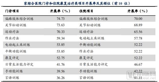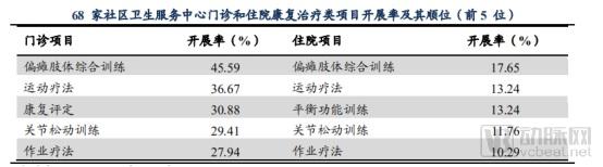 同样,有一项研究对上海市登记在册的医疗机构进行了调查,包括116家综合医院、5 家康复医院和98家社区。调查结果显示,康复项目开展率最高达94.12%,而较低的则不超过5%,提示康复项目的项目开展率较低,而且不同项目的开展率存在差距,服务项目相对集中而单一。