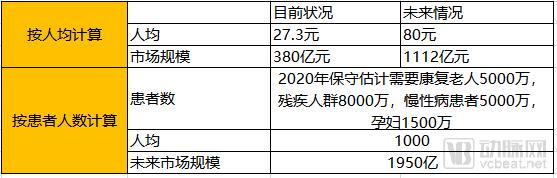 据前瞻产业研究表明,中国2017年康复市场规模是380亿人民币,而美国3.2亿的人口,康复产业已经在2013年达到了2000亿美元(考虑长期护理),巨大的市场空间,必将在未来加剧康复行业快速变化。