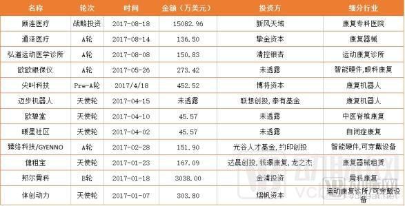动脉网的数据库显示,2017年,康复领域的融资事件共完成12起,根据公开披露的数据,总金额约1.94亿美元,约合人民币12.86亿元,但其中,就有10亿元人民币的“贡献”来自于顾连医疗。而剩余的2.86亿元人民币的融资,由11家企业瓜分。