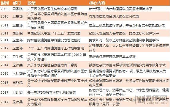 医保支付:治疗性康复辅助器具将逐步纳入医保报销范围;医保报销的康复医疗项目从9项增至29项,覆盖人群从残疾人为主扩大到各类患者人群,报销项目从物理治疗为主延伸到各类治疗性项目和康复评定项目。