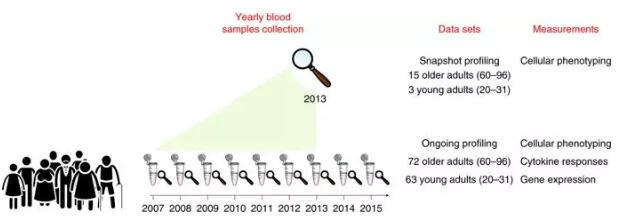 研究人员对135名健康的志愿者进行了为期9年的跟踪,每年采集一次血液样本,用来收集细胞亚群表型、细胞对细胞因子刺激的功能反应和全血基因表达等数据。当研究人员使用一系列机器学习技术进行分析后,结果显示,尽管不同人群和个体的免疫系统随时间的推移会产生大量的变化,这些数据仍然能够体现出细胞亚群的变化模式。随后,这些数据和指标在超过2000名患者的身上得到了进一步的验证。
