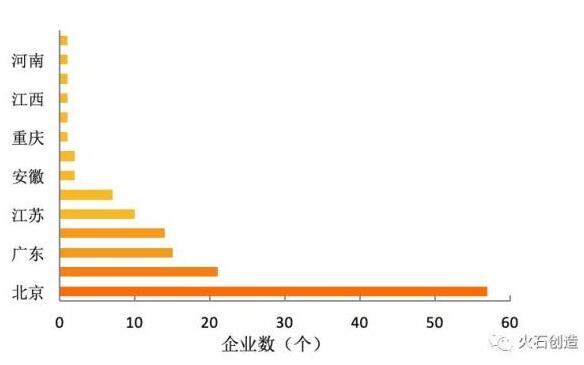 目前国内可统计的医疗AI产业公司有144个,并以京、沪浙苏、广东的医学AI产业为主,形成鼎足之势。四川、安徽、重庆、河南、福建、江西和湖北等地也开始布局医疗AI产业。见图2。