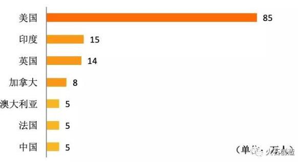 根据腾讯研究院发布的《2017全球人工智能人才白皮书》,全球AI人才约30万人,主要分布在各国AI产业公司和科技巨头中,约占66.67%;全球367所高校中的学术和储备人才约占33.33%。根据2017年领英发布的《全球AI领域人才报告》,我国AI人才总数超过5万人,而国内AI人才需求量为500~600万人,人才需求缺口巨大。见图3。