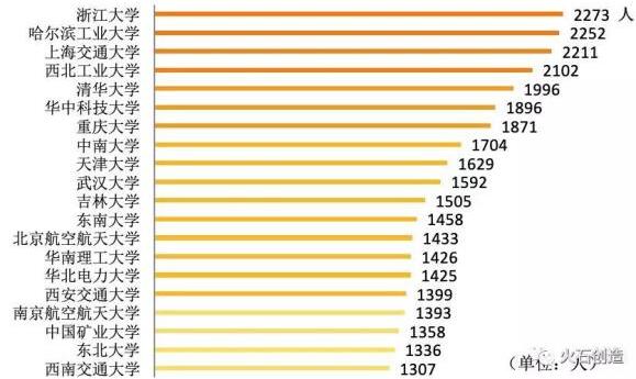 我国AI学术人才集中在计算机、自动化和电子信息类院系,清华大学培养国际AI人才822人,位列世界第一;上海交大排名第二(590人)。但浙大和哈工大AI人才投入量分别位居国内前两位。大部分高校的AI学术研究还局限在国内学术圈。除清华、上海交大有一定人工智能产业化人才集聚外,其他高校多是以学术为主。从学术到产业化、到大规模应用还需要更多时间和研发投入,加强产学研究合作,支持产业持续发展。我国AI人才投入量排前20位的高校见图5。
